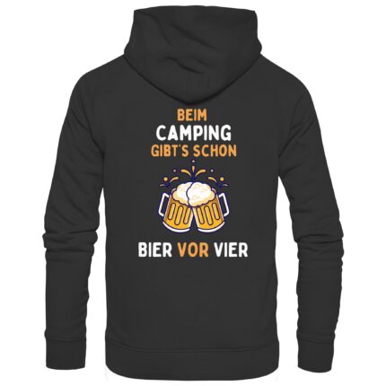 Beim Camping gibt’s schon Bier vor Vier (Backprint) | Camping-Hoodie Unisex