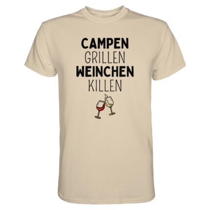 Campen Grillen Weinchen Killen (schwarze Schrift) – Premium Shirt