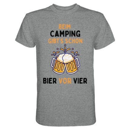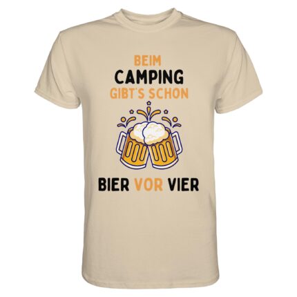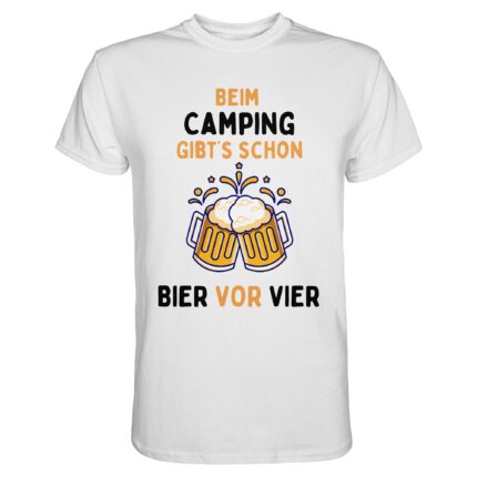 Beim Camping gibt’s schon Bier vor Vier (schwarze Schrift) | Camping-T-Shirt Männer